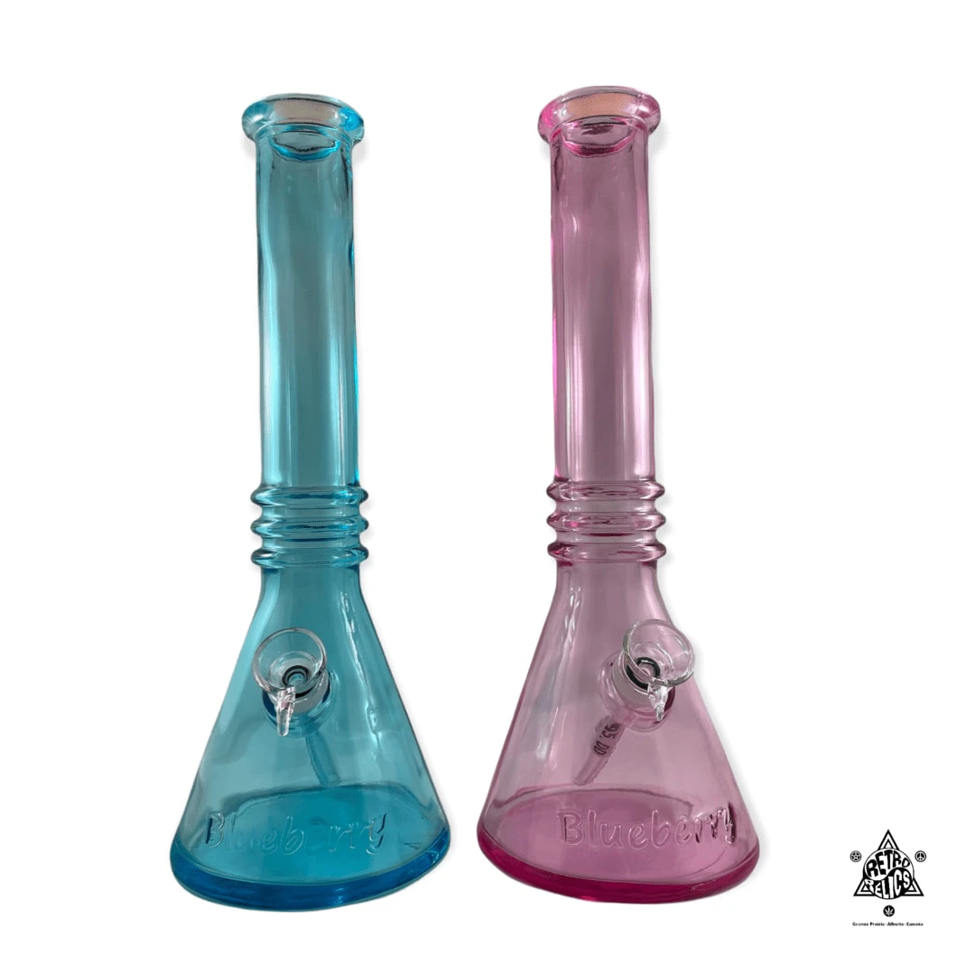 A new generation of soft glass design that's the first in the world.These bright additions to the family have new connection fittings. Unlike most soft glass, this design has an angled neck that stabilizes the slide bowl. The rubber gasket's only job now is to create that airtight seal needed, which was its intended function. The glass is thick with three rings for an easier grip and has an embossed Blueberry wordmark.