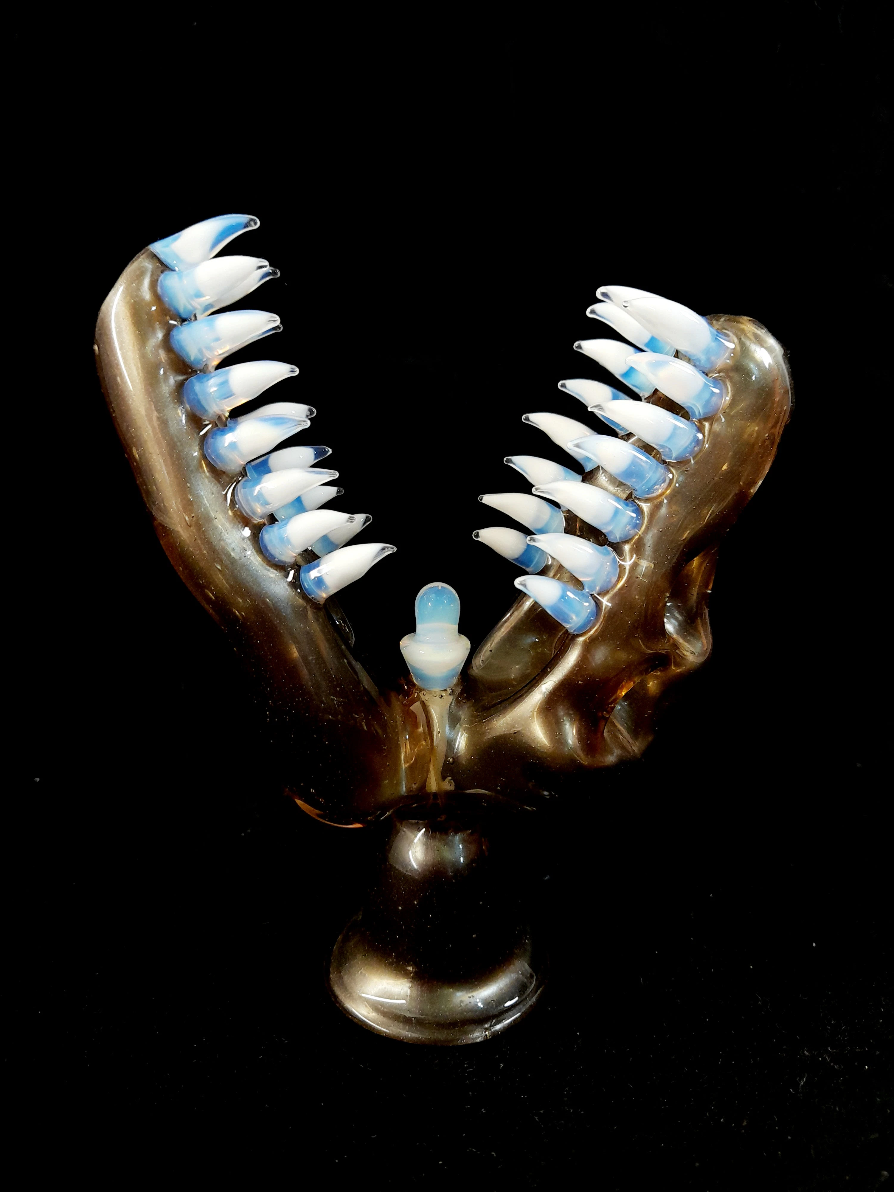 Perfect for those who appreciate both unique artistry and smooth performance, the EKA Dino Skull Hashie offers a one-of-a-kind smoking experience with a visually stunning twist. Whether you're a glass collector or someone looking for an exceptional smoking accessory, this piece delivers both beauty and function.