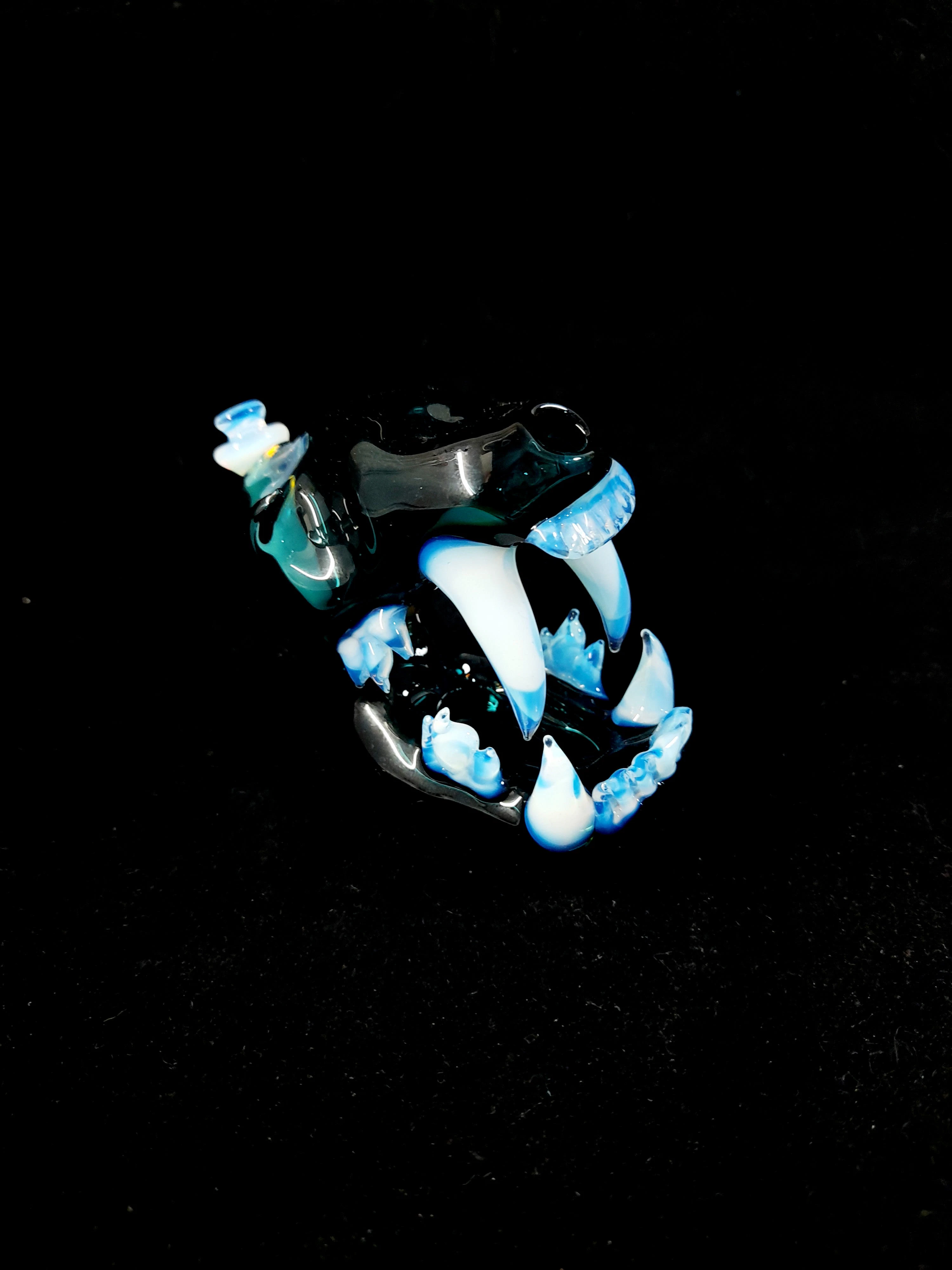 Unleash your wild side with the EKA Glass Handmade Sabretooth Skull Hashie (Turquoise), a bold and artistic smoking tool that combines creativity and performance. Handcrafted from premium borosilicate glass, this hashie features an intricate sabretooth skull design with a stunning turquoise color, making it a standout piece in any collection. The unique design ensures a comfortable grip, while the durable construction guarantees long-lasting use.