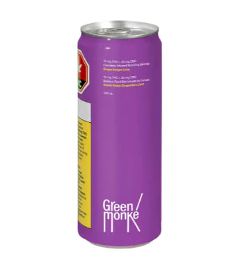 A new Green Monké flavour with a nostalgic flavour. With a 2:1 ratio of CBD to THC, this drink contains 20 mg of CBD and 10 mg of THC. Now made in a recyclable printed can. Pour this purple jungle juice into a cup full of ice and serve with a slice of lime. Made without animal products or gluten.