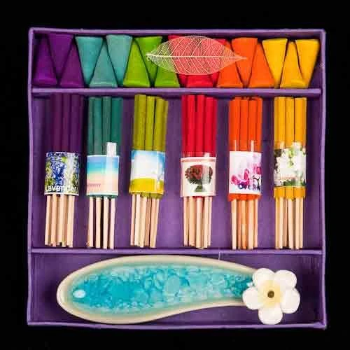 Natures Reserves Incense gift box featuring six scents including; coconut, vanilla, strawberry, wind, floral fields and black cherry.