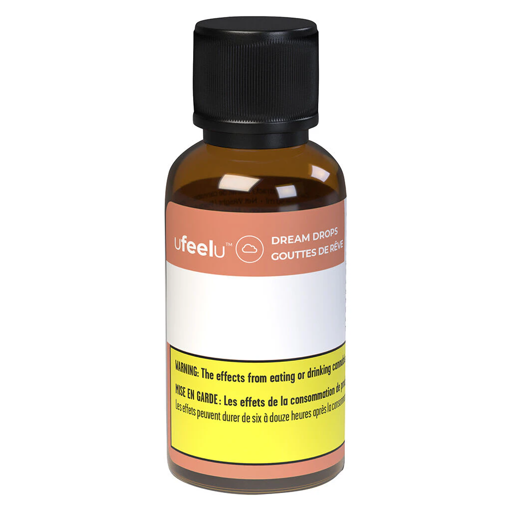 Dream Drops by ufeelu features a non-psychoactive blend of 600 mg of CBD, 300 mg CBN and 300 mg of CBN in a sunflower oil base. Infused with ufeelu's signature DREAM blend of more than 30 botanical terpenes featuring sweet berry notes with light floral and herbal undertones. Our premium drops are designed to be taken sublingually (under the tongue) but may also be added seamlessly to coffee or tea. Each 1 ml dispensed with the supplied syringe contains 20 mg of CBD, 10 mg of CBN and 10 mg of CBG of broad-spectrum oil extracted from Canadian grown hemp. ufeelu is an experienced and passionate cannabis collective based in Vancouver, BC, founded in 2018. We believe in using natural and simple ingredients to curate thoughtful non-psychoactive cannabis products designed with versatile usability in mind.