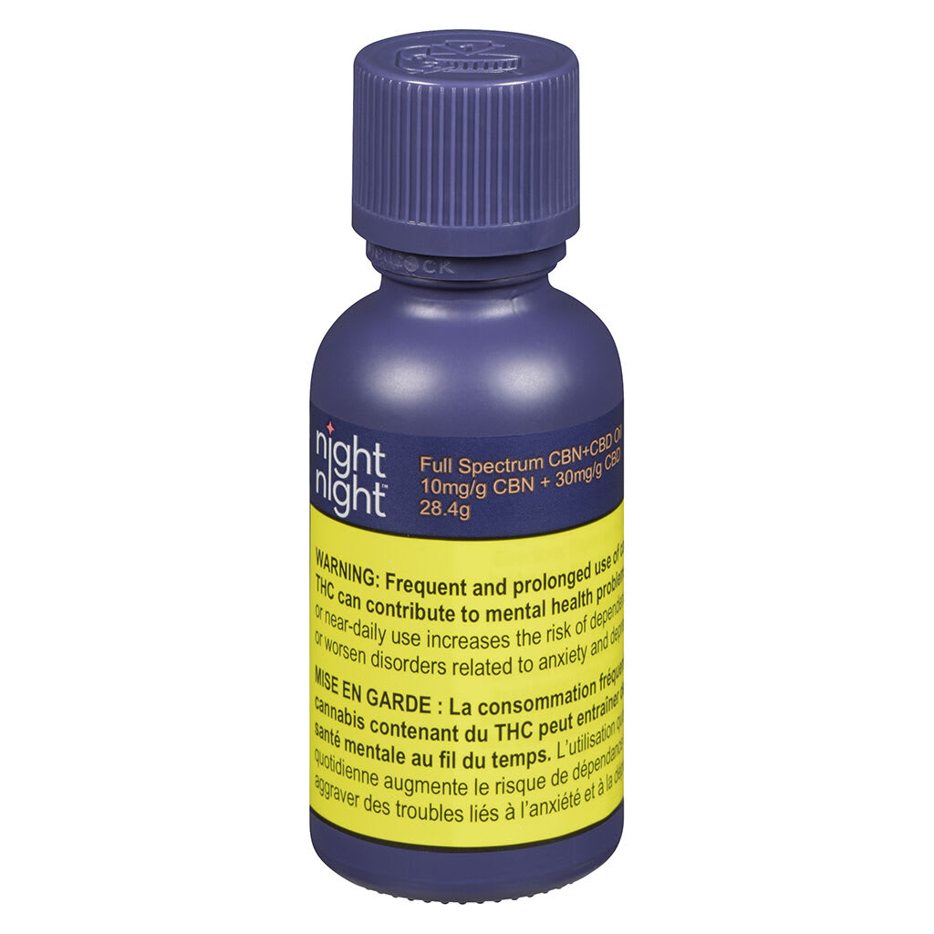 NightNight Full Spectrum CBN+CBD Oil contains 10mg/g of CBN, 30mg/g of CBD, and no THC, creating a new way to experience the synergistic effects of CBN and CBD in a familiar format. NightNight's CBN+CBD formulation is combined with pharmaceutical-grade MCT and terpenes, resulting in a full spectrum functional oil ideal for nighttime use. All NightNight's CBN products are enhanced with CBD and other natural ingredients to create consumer-focused products of unparalleled quality and utility. NightNight products are developed and manufactured by Purileaf in Niagara Falls, Ontario. Each lot is tested by accredited laboratory to ensure quality and consistency.