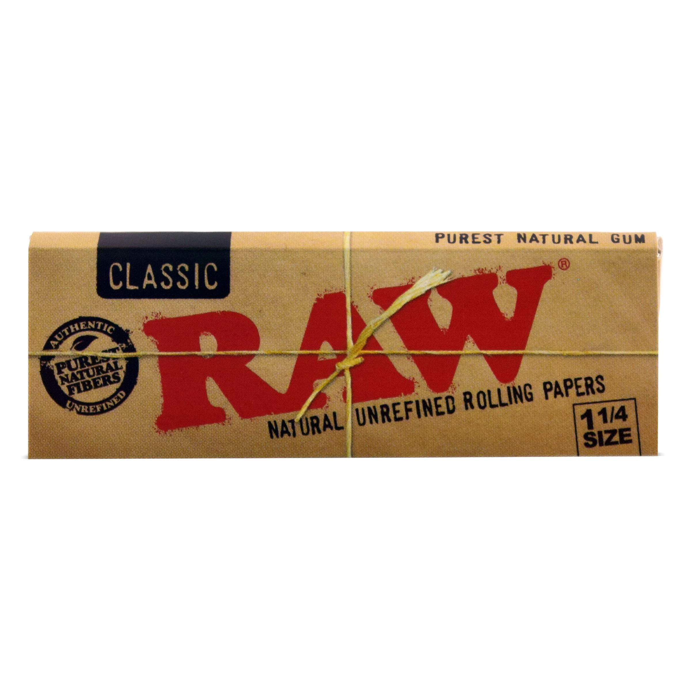 This product is final sale. RAW's Classic rolling papers are made from a flax and hemp hybrid blend of unbleached (not chlorine-whitened) fibres. The acacia gum line is non-toxic, and the paper is a translucent natural light brown colour. Each paper features RAW's patented criss-cross watermark, which helps prevent runs and maintains the even-burning characteristics. All RAW papers are vegan-friendly with no additives.