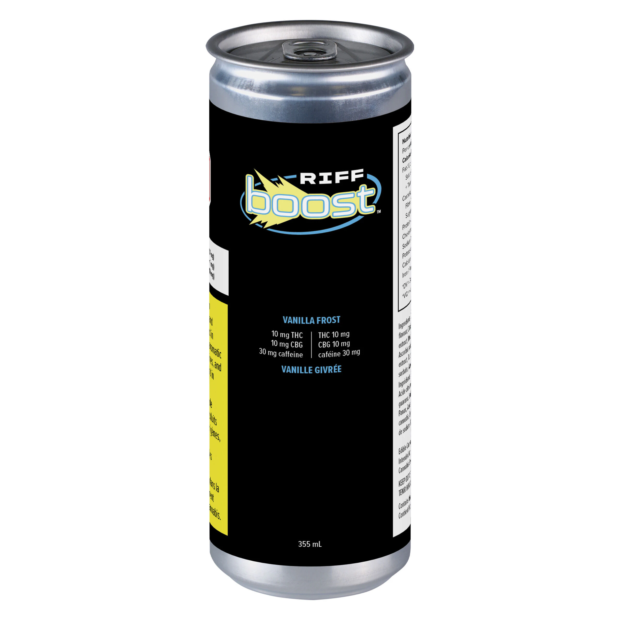 Vanilla Frost is a classic cream soda flavour infused with 10mg each of nano-emulsified THC and CBG, 30mg of caffeine and guarana and ginseng extract for extra potency. It's elevated in a can that's crafted for maximum taste and zero cannabis aftertaste. Spark something new with RIFF BOOST cannabis-infused energy drinks.
